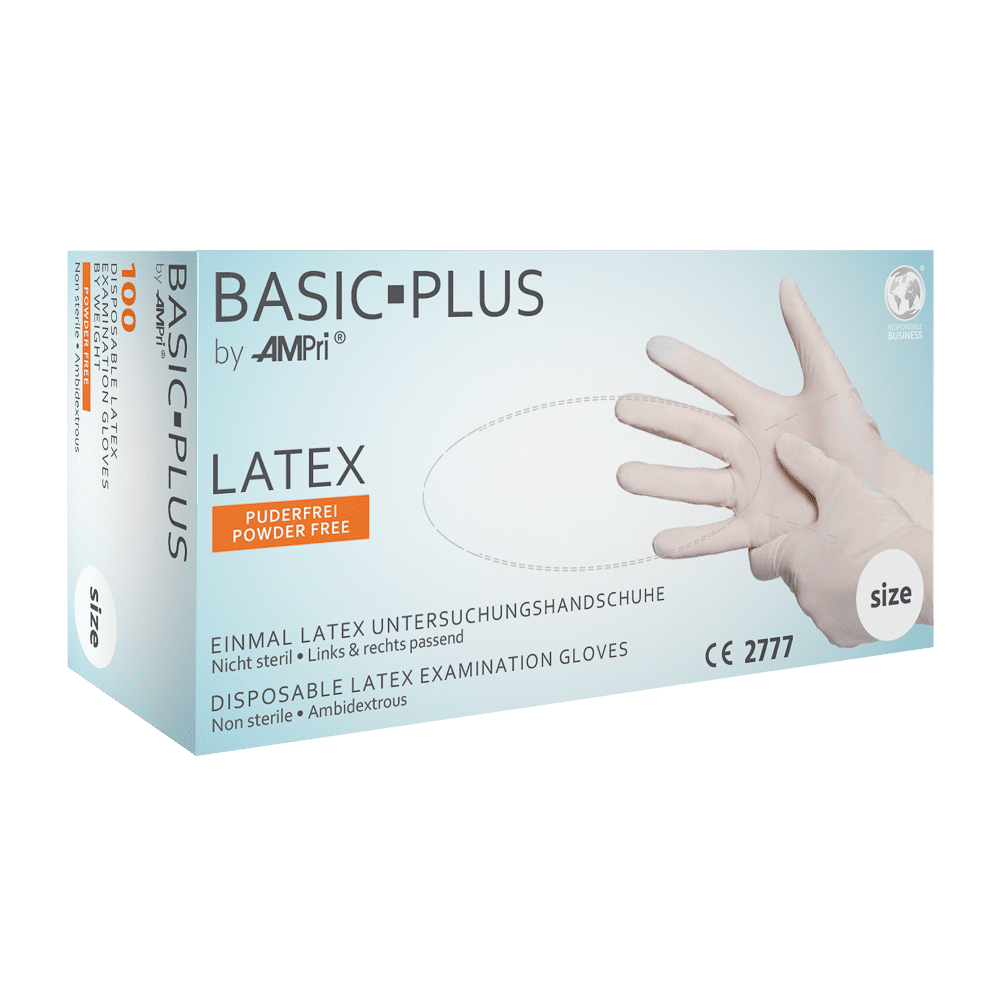 - Basic Latex-Einweghandschuhe der Marke Basic-Plus