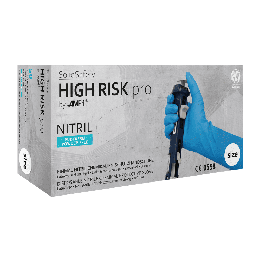 Bei AMPri können Sie darauf bauen, dass alle unsere Artikel von erwiesener hoher Qualität sind. Ob Basis-Qualität mit hohem Grundstandard, Classic-Qualität der gehobenen Kategorie oder Premium-Qualität, die aller höchsten Ansprüchen genügt: Alle Artikel können Sie bedenkenlos einsetzen. Diese Nitril Handschuhe haben eine Premium-Qualität. Die ungepuderten, unsterilen Nitriluntersuchungshandschuhe sind für Links- und Rechtshänder gleichermaßen verwendbar, da sie beidhändig zu tragen sind. Die Überlänge sorgt für einen idealen Spritzschutz auch auf dem Handgelenk und Teilen des Unterarms. Durch die Volltexturierung der Oberfläche haben Nitril Einweghandschuhe einen deutlich besseren Grip als andere Einweghandschuhe, die nicht oder nur teilweise texturiert sind. Zu all den positiven Eigenschaften gesellt sich auch der Vorteil, dass die Nitrileinweghandschuhe besonders griffig sind. Als Gegenstand der persönlichen Schutzausrüstung gemäß der Kategorie III der PSA-Verordnung ((EU) 2016/425) schützen sie vor Gesundheitsrisiken, die irreversibel sind oder zum Tod führen können. Das AQL-Level, also die annehmbare Qualitätsgrenzlage, ist die größtmögliche Anzahl fehlerhafte (undichte) Nitril Einmalhandschuhe eines Loses oder einer Charge in Prozent (Leistungsstufe/AQL). Je winziger der AQL-Wert, desto besser ist die Qualität. Für medizinische Einweghandschuhe ist ein AQL von 1,5 in der Norm EN 455-1 vorgeschrieben. Diese Nitril Einmalhandschuhe sind mit einem AQL-Wert von 0,65 weitaus besser bewertet, was die herausragende Produktionsqualität beweist.Wir empfehlen die Nitriluntersuchungshandschuhe für diese Anwendungen