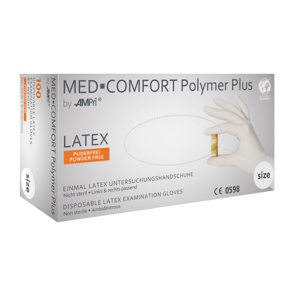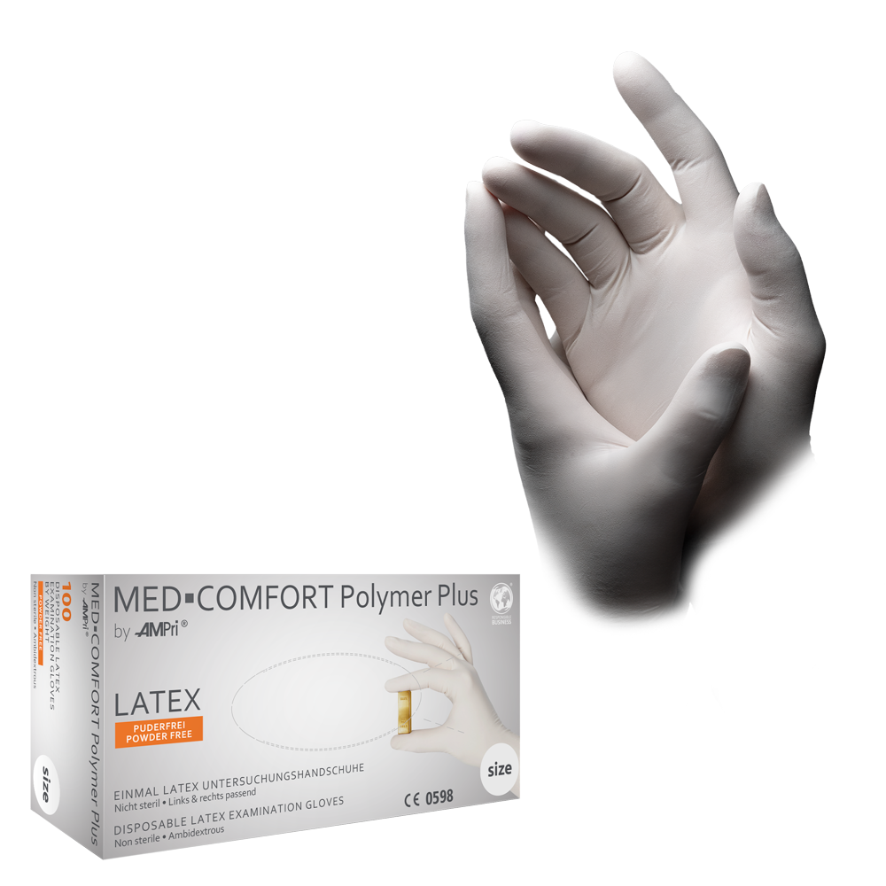 - Premium Latex-Einweghandschuhe der Marke Med-Comfort
