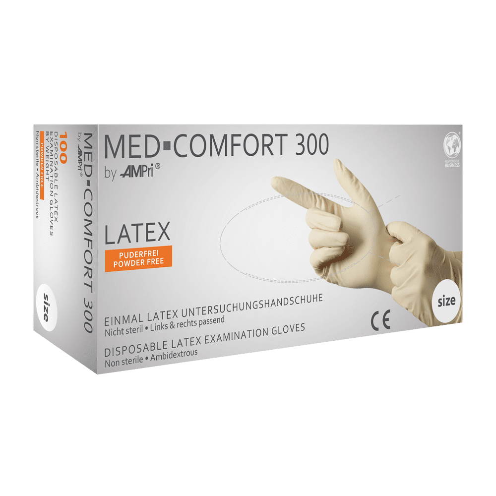 - Premium Latexeinmalhandschuhe der Marke Med-Comfort