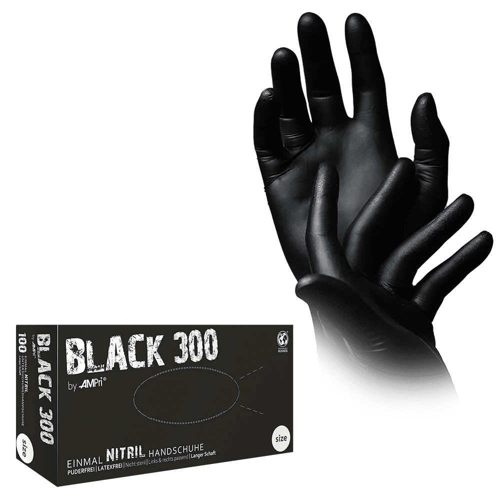 - Farbe der Nitrileinmalhandschuhe: schwarz