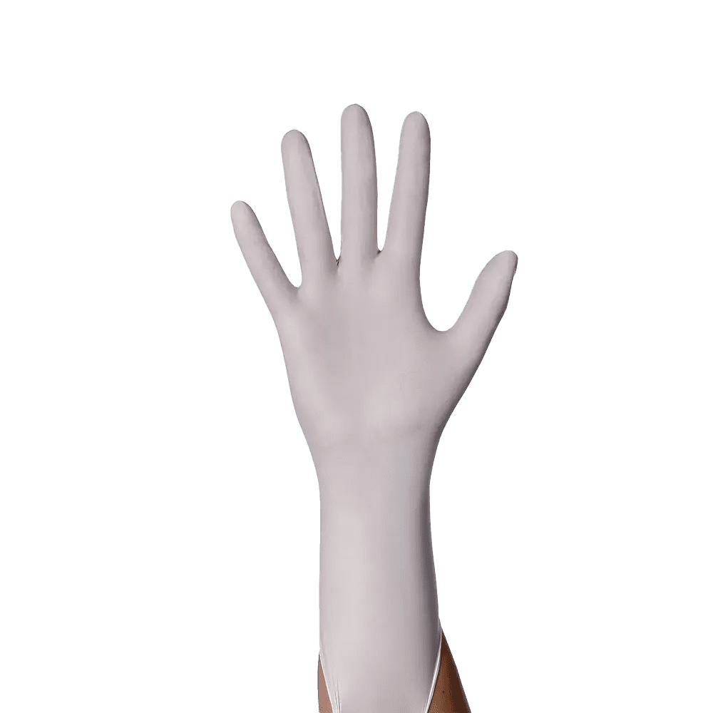 - Dehnbarkeit der Extraklasse: Nitril kann bis zu 500% seiner Maße gestreckt werden. Dank des sogenannten Materialgedächtnisses passt es sich flexibel an die Form der Hände an.