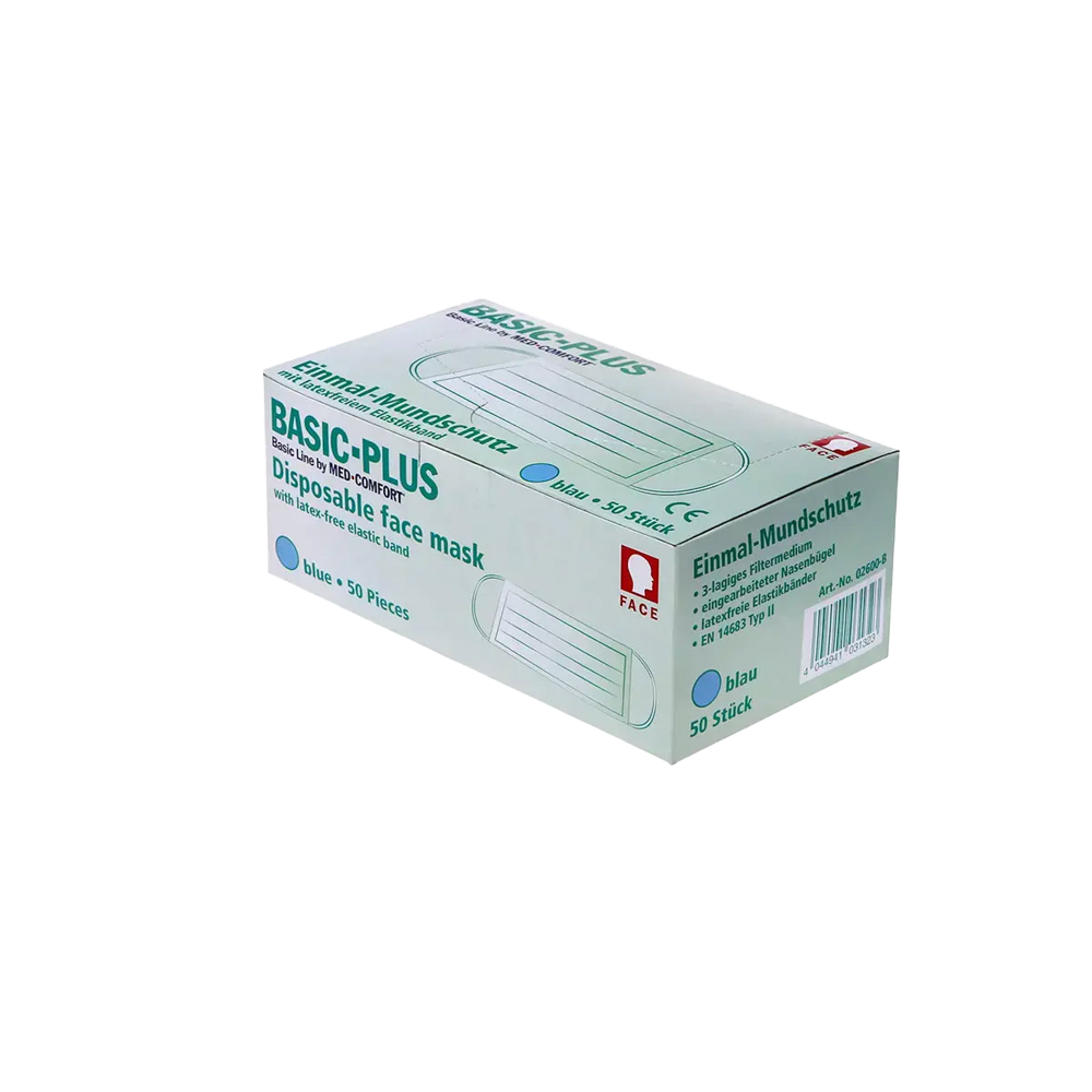OP Maske, blau, 3-lagig, Typ II, mit Elastikbändern, Basic-Plus