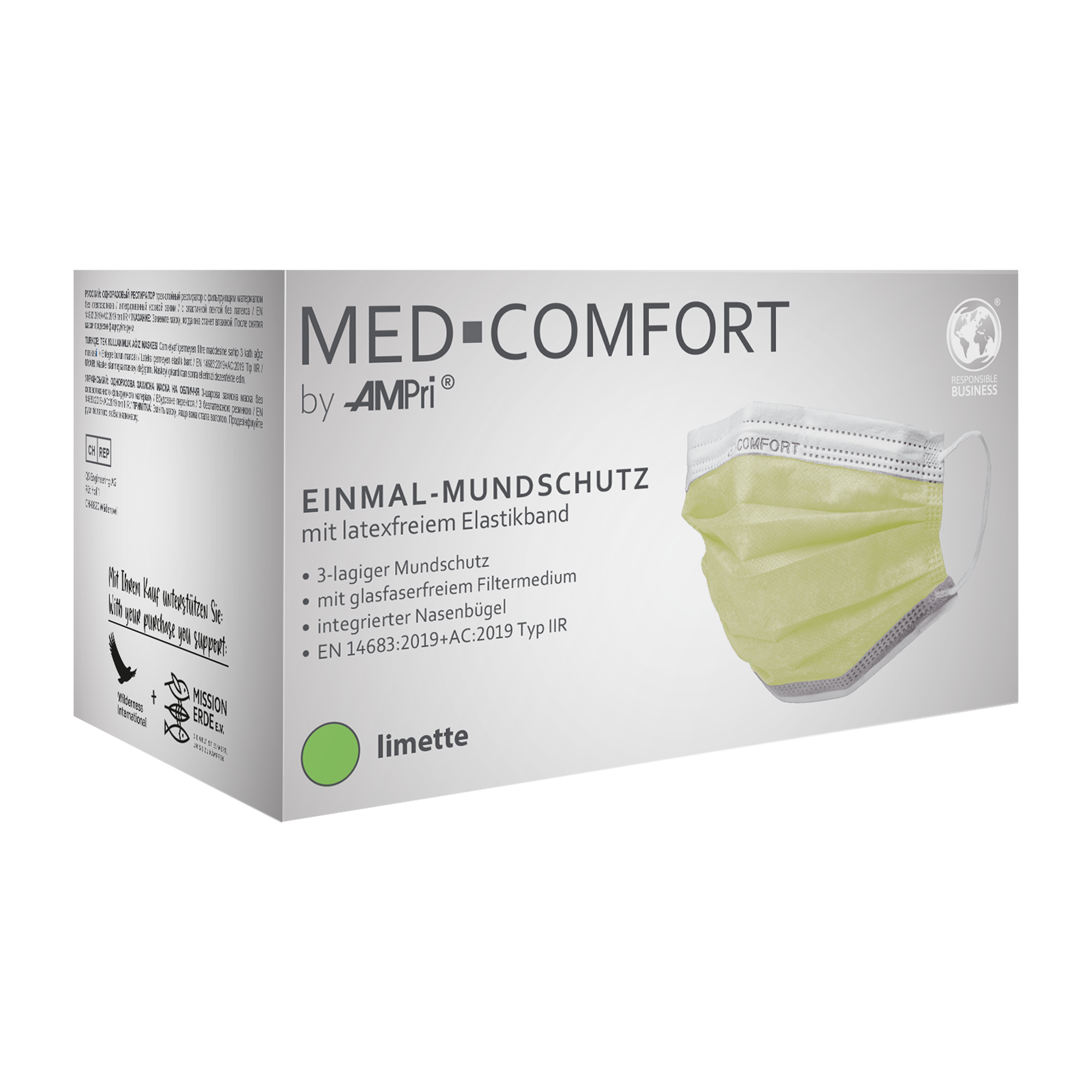 - Mundschutztyp: Typ IIR, spritzwassergeschützt