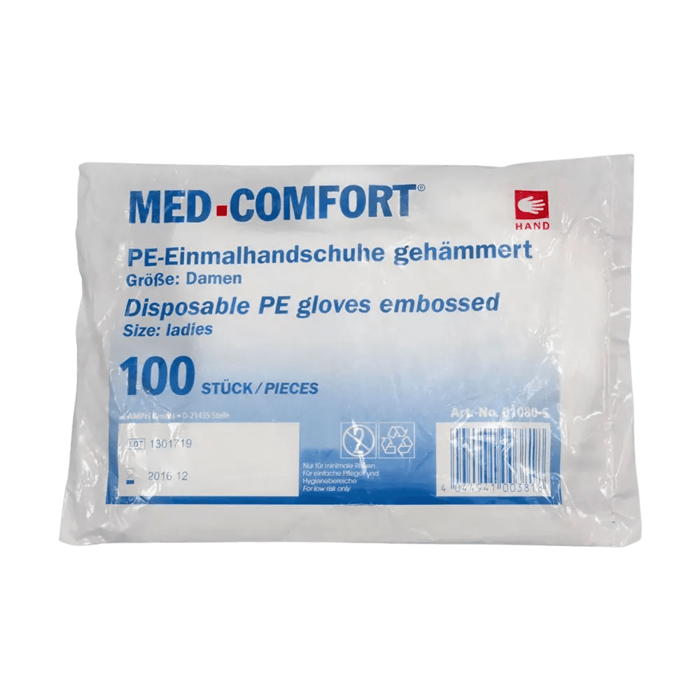 Bei AMPri können Sie darauf bauen, dass alle unsere Artikel von erwiesener hoher Qualität sind. Ob Basis-Qualität mit hohem Grundstandard, Classic-Qualität der gehobenen Kategorie oder Premium-Qualität, die aller höchsten Ansprüchen genügt: Alle Artikel können Sie sorgenfrei einsetzen. Diese PE Einweghandschuhe haben eine Premium-Qualität. Die ungepuderten, unsterilen PE Einweghandschuhe sind für Links- und Rechtshänder gleichermaßen verwendbar, da sie beidhändig zu tragen sind. Zu all den positiven Eigenschaften gesellt sich auch der Vorteil, dass die PE Einmalhandschuhe gehämmert sind.Unsere Empfehlung für Sie: Unsere PE Handschuhe eignen sich ideal für die verschiedensten Anwendungsbereiche.