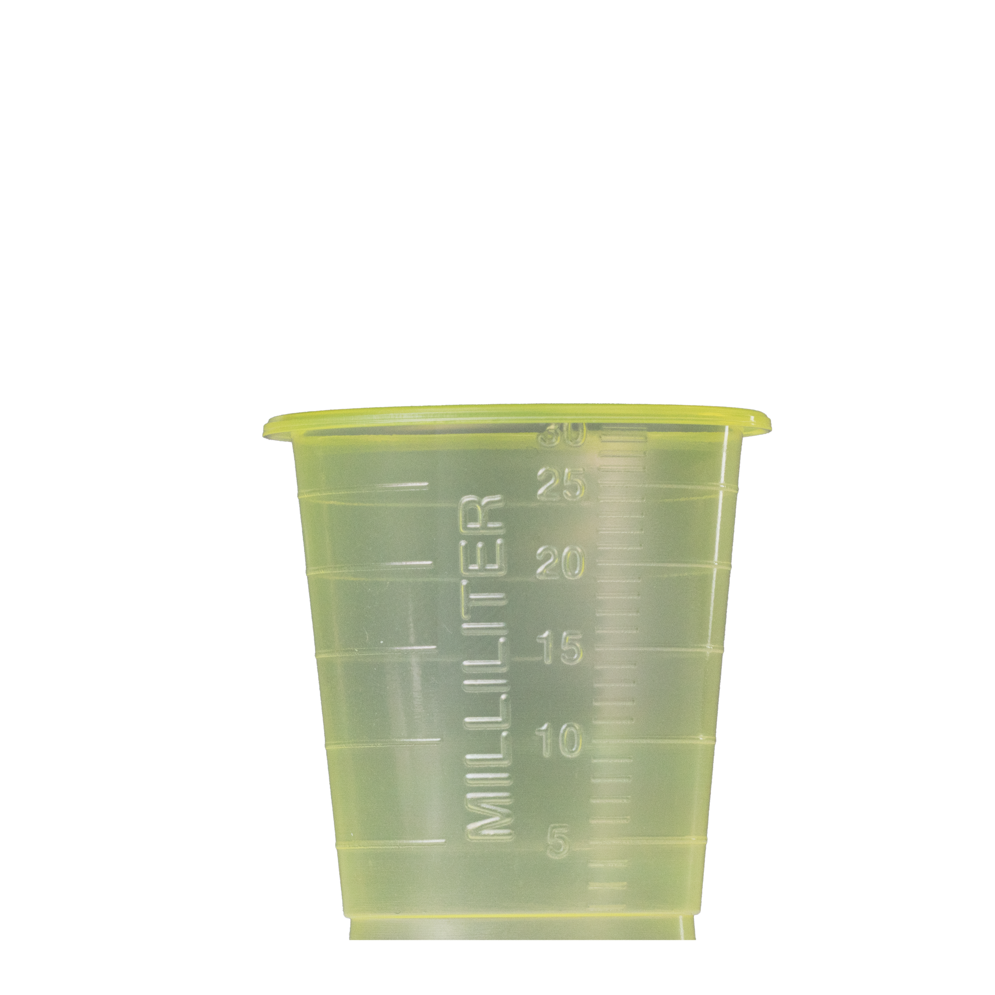 Produktinformationen "PP Eco Einmal Medizinbecher, 30 ml, graduiert, gelb, Med-Comfort Eco: nachhaltig produzierter, medizinischer Polypropylen Becher mit Messfunktion zum Dosieren von Flüssigkeiten und Verteilen von Medikamenten als Stationsbedarf kaufen."
