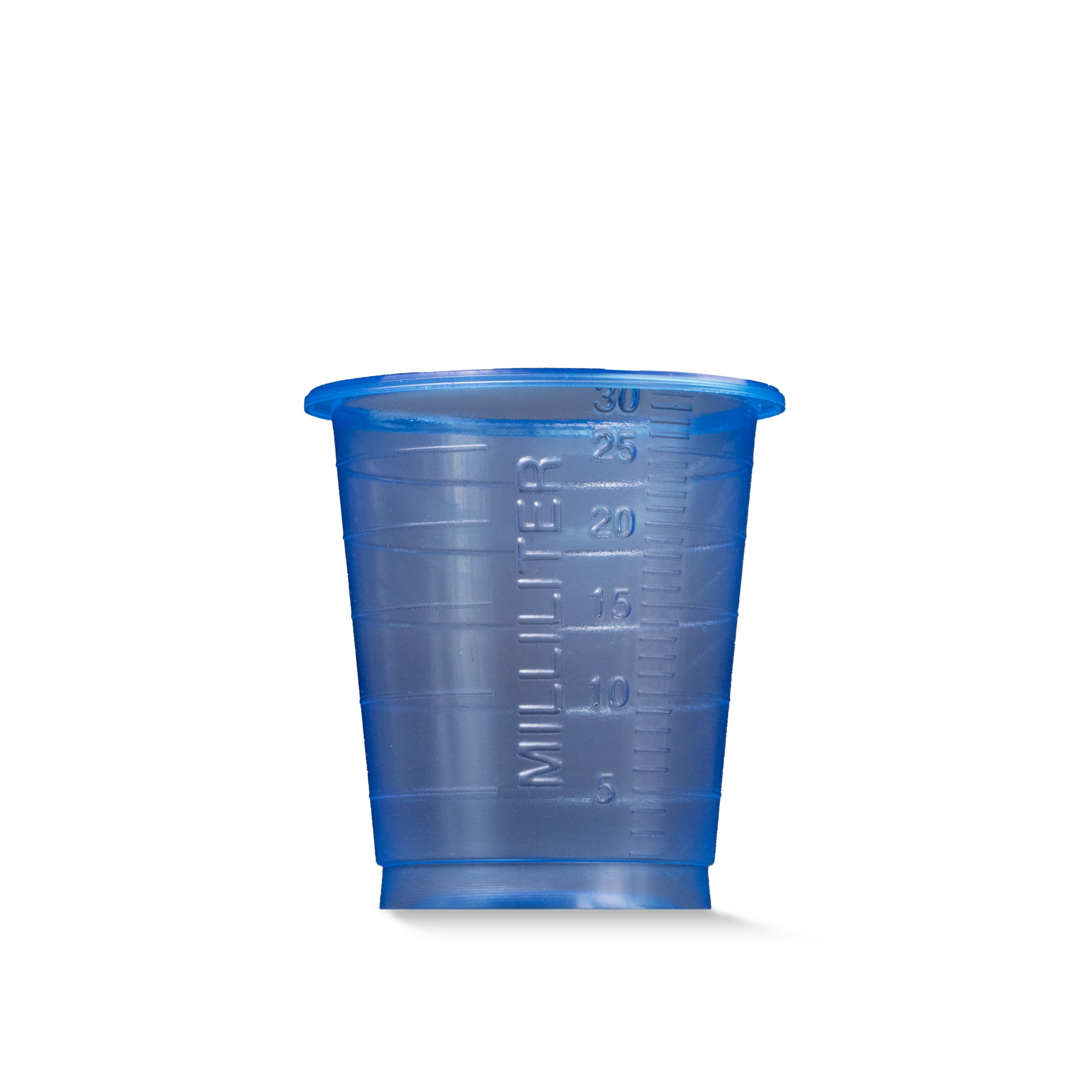 Produktinformationen "PP Einmal Medizinbecher, 30 ml, graduiert, blau, Med-Comfort Basic: nachhaltig produzierter, medizinischer Polypropylen Becher mit Messfunktion zum Dosieren von Flüssigkeiten und Verteilen von Medikamenten als Stationsbedarf kaufen."