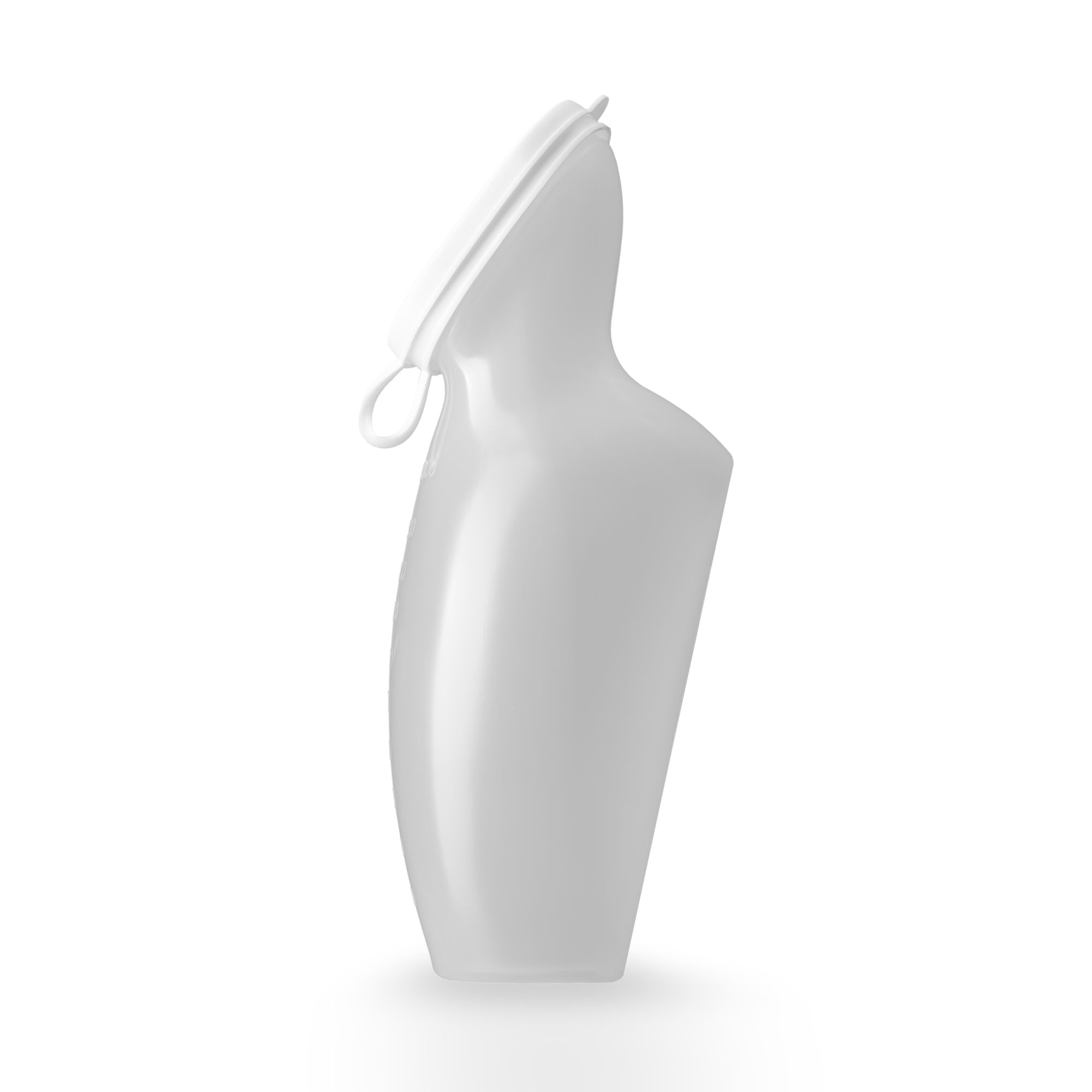 Produktinformationen "PP Urinflasche für Frauen, 1 Liter, Farbe durchscheinend mit weißem PE Deckel, Top-Comfort: desinfizierbare und hitzbeständige Urinflasche für Frauen als Stations- und Patientenbedarf kaufen."