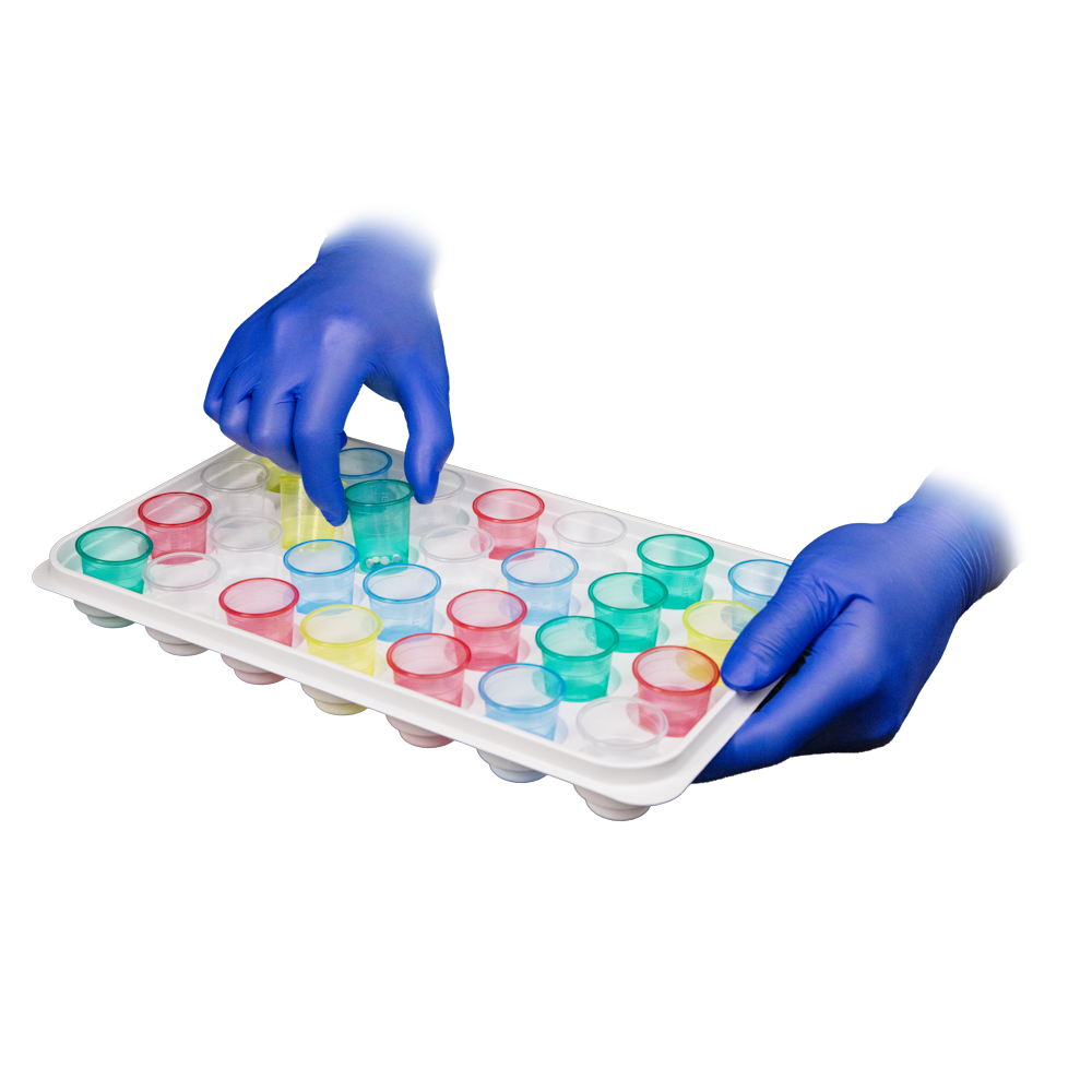 Mit dieser besonderen Eigenschaft kann das Tablett noch beeindrucken: für 28 Medizinbecher.