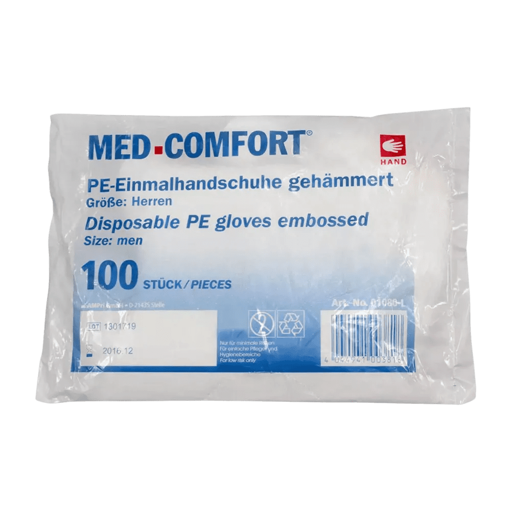 - Premium PE Einweghandschuhe der Marke Med-Comfort