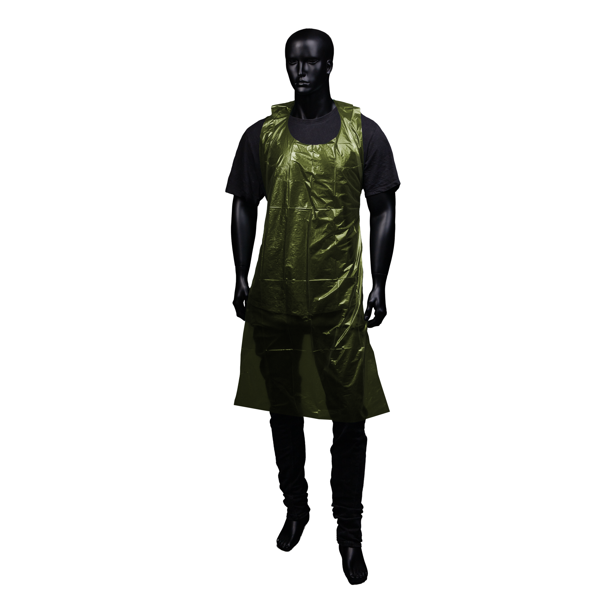 Polyethylen ist ein Funktionsgarn, dass sich aufgrund seiner Eigenschaft sehr gut als Material für die Schürze eignet. Es ist stabil und reißfest, dabei aber flexibel. Die Kategorie I für persönliche Schutzausrüstung (gemäß PSA-Verordnung) umfasst ausschließlich Arbeitsmittel, die vor geringfügigen Gesundheitsrisiken schützen. Die Schürzen können dies gewährleisten, in dem sie den Körper bzw. Körperteile zum Beispiel vor schwach aggressiven Reinigungsmitteln schützen. Dadurch ist die Schürze auch beim Umgang mit wässrigen, alkoholischen, fettigen, sauren und trockenen Lebensmitteln geeignet. Als Verschluss dienen stabile Binden an der Einwegschürze. Wichtig zu erwähnen ist auch, dass diese Einwegschürze latexfrei und gehämmert ist. Die Herstellung ohne den Naturrohstoff Latex sorgt dafür, dass die Einwegschürze eine optimale Hautverträglichkeit besitzt und auch von Allergikern ohne Bedenken genutzt werden kann.