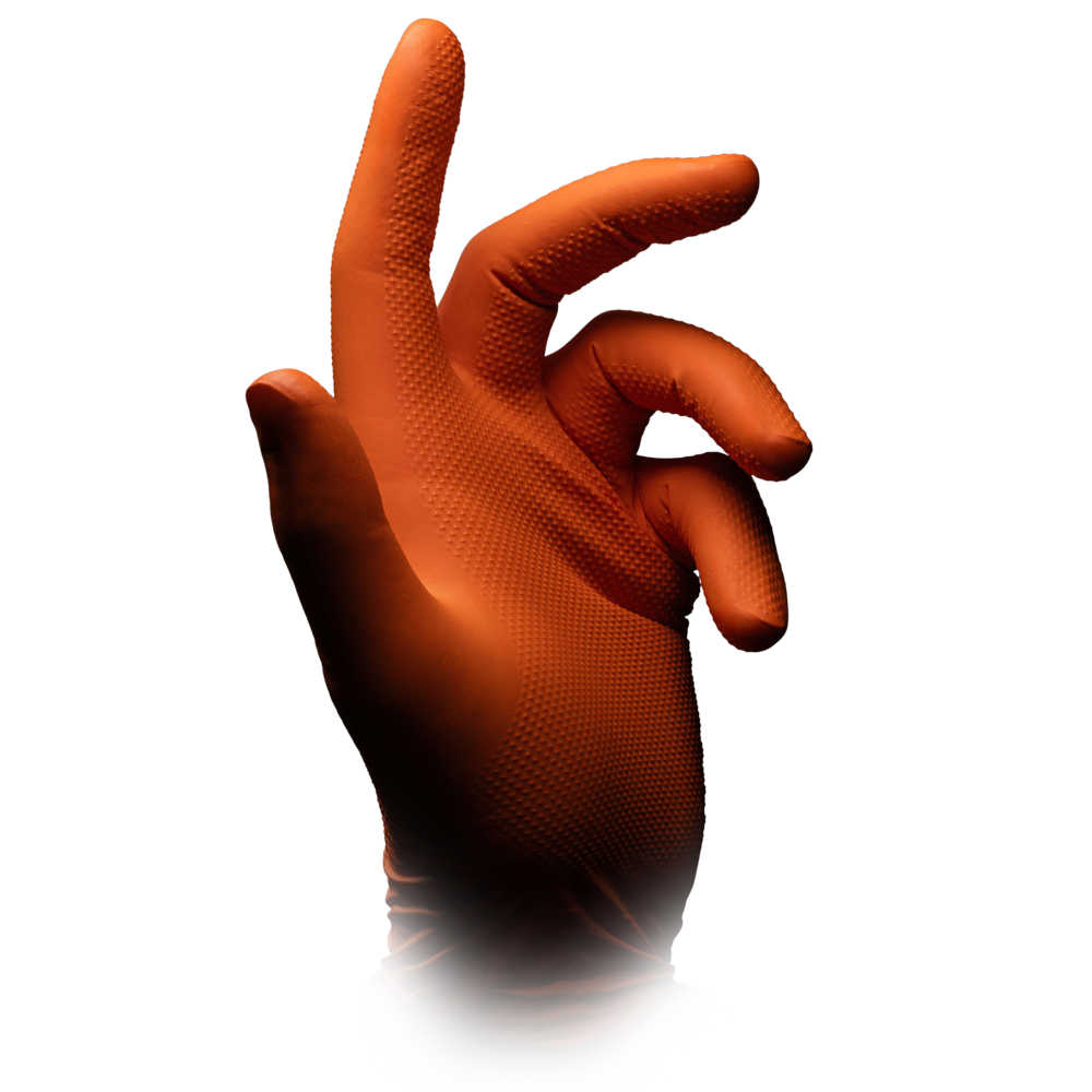 Produktinformationen "Extreme Grip Einmalhandschuh aus Nitril, Größe M, orange, ALPHA: extra griffigen und chemikalienbeständigen Arbeitsschutzhandschuh aus Nitril und für den Lebensmittelbereich geeignet als PSA kaufen."