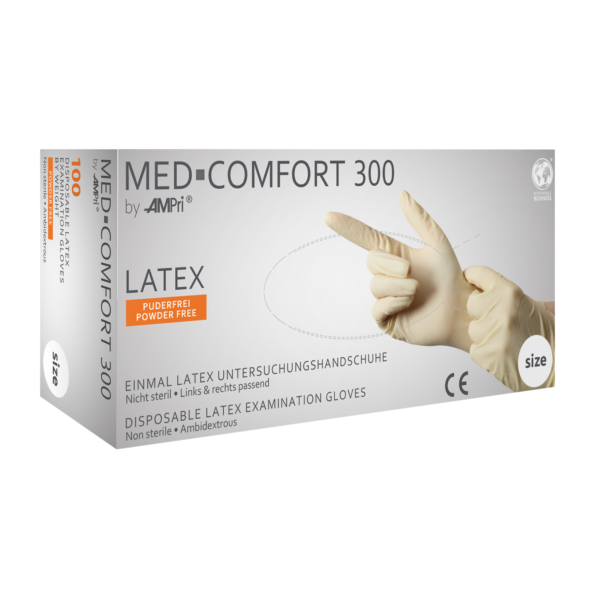 - Premium Latexeinmalhandschuhe der Marke Med-Comfort