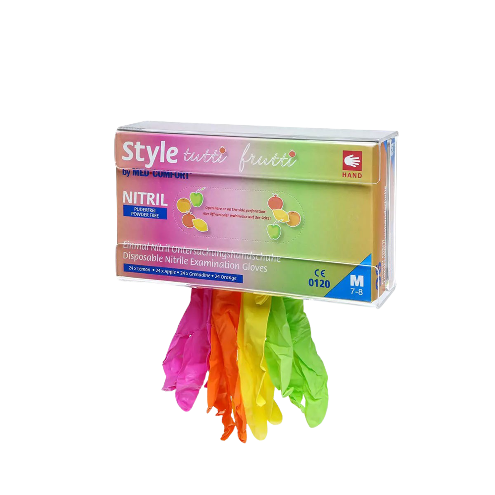 Produktinformationen "Nitrilhandschuhe, bunt, Farbenmix, Größe XL, puderfrei, Style tutti frutti by Med-Comfort: Nitril Einmalhandschuhe als Schutzhandschuhe und Untersuchungshandschuhe aus Nitril kaufen."