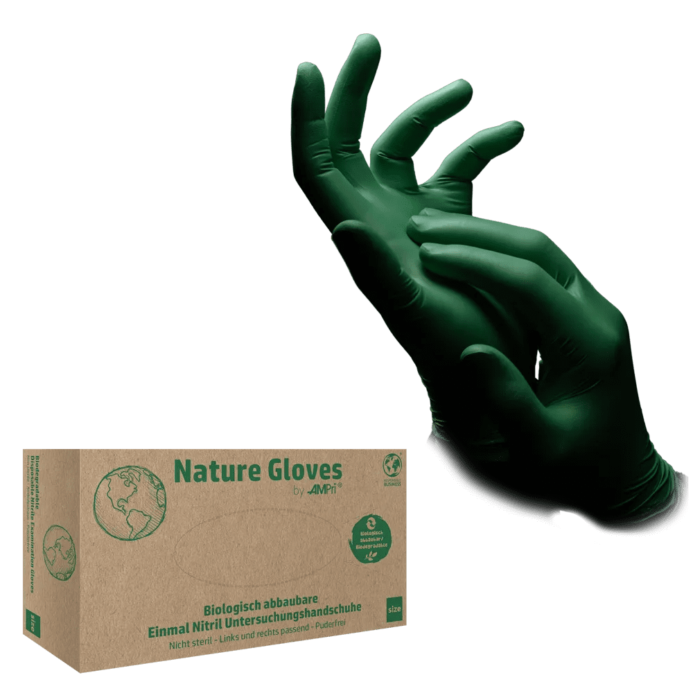 - Besondere Eigenschaft der Nitril Untersuchungshandschuhe: biologisch abbaubar